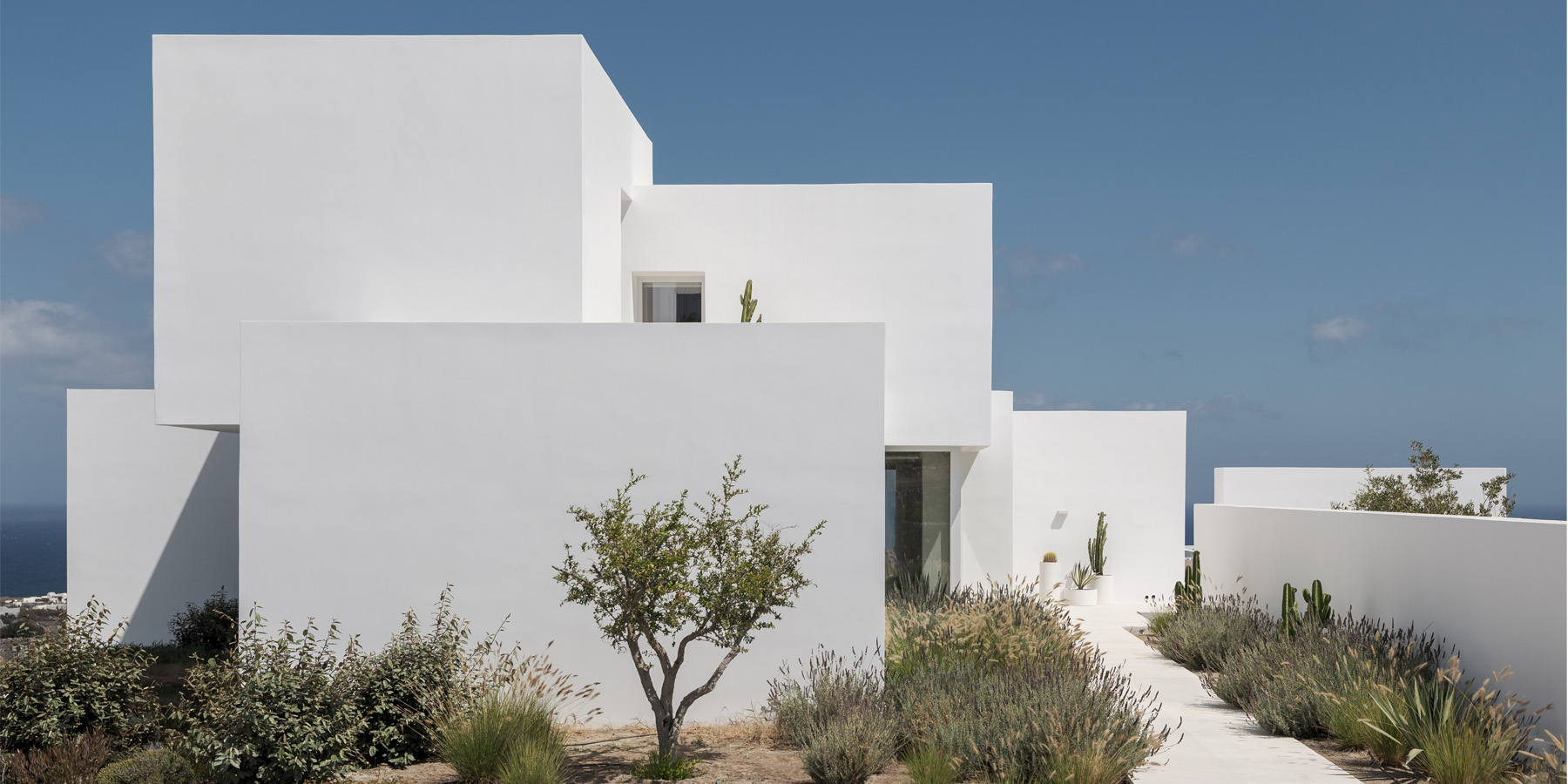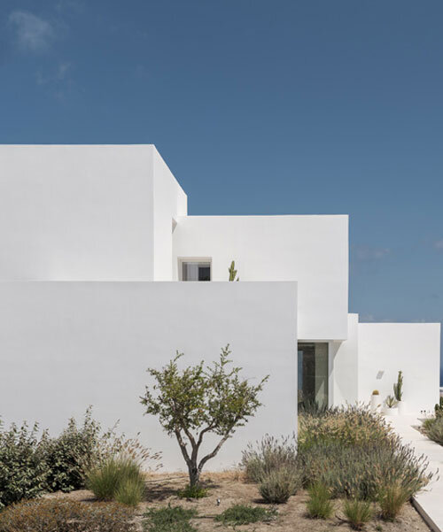 white plaster prisms reinterpret Santorini’s cubistic architecture