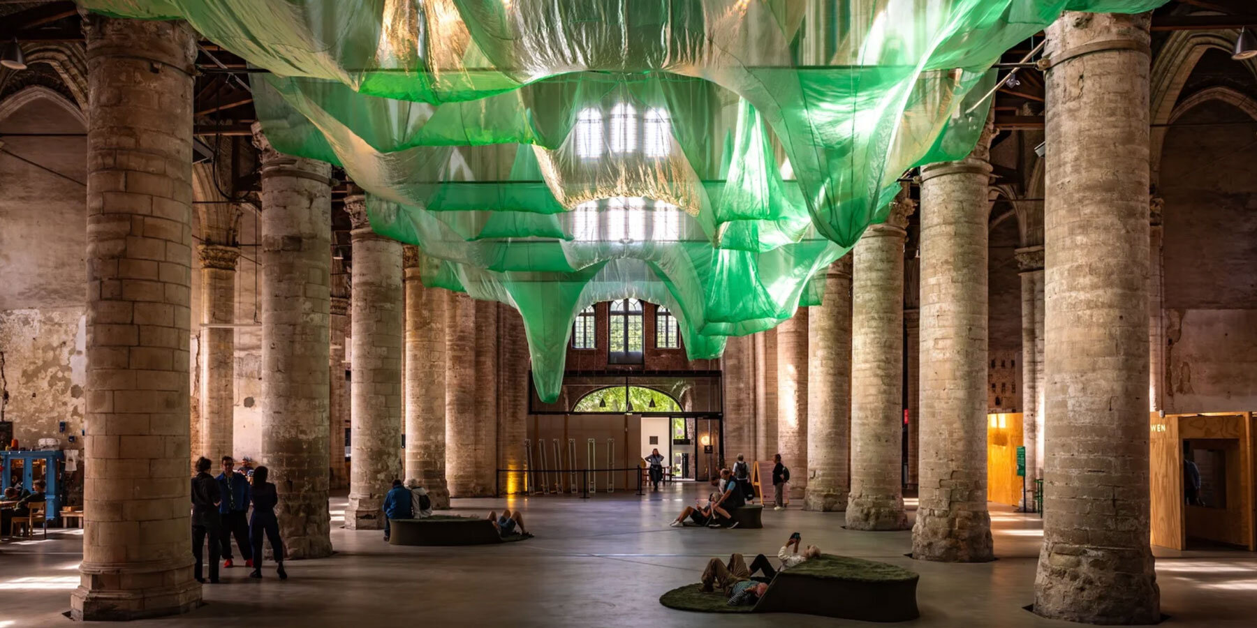 the fabric element hovers seven meters above the nave, animated by custom mechanics