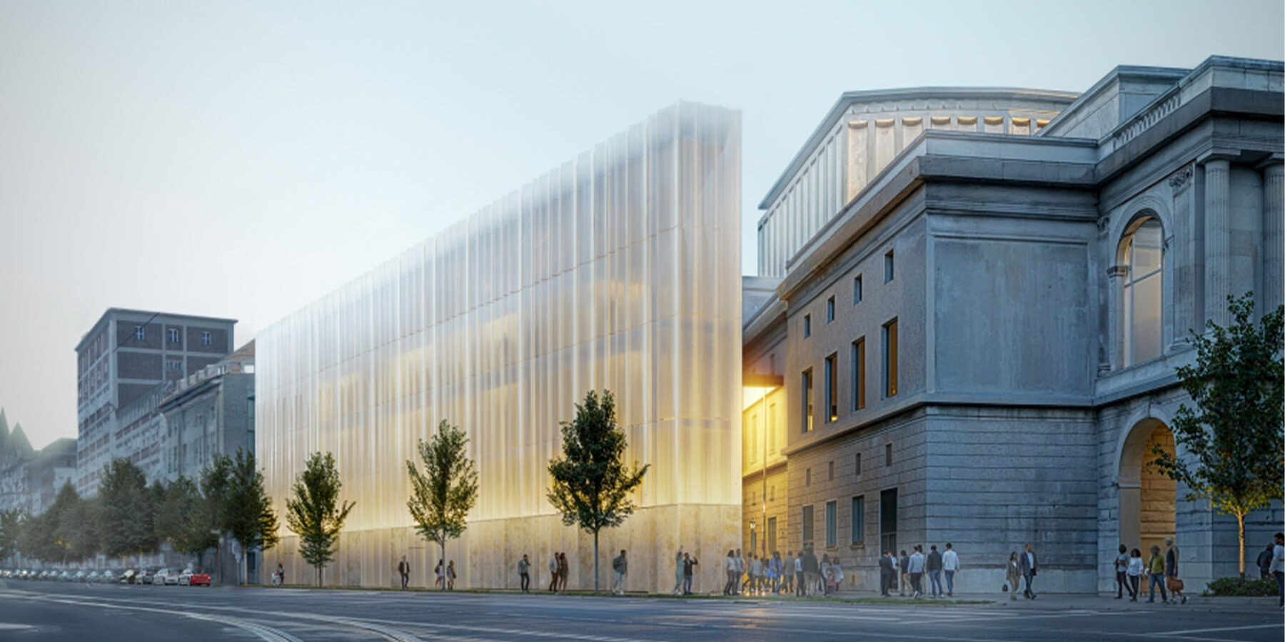 with its undulating facade, the design integrates contemporary cultural programming with the building’s soviet-era legacy.