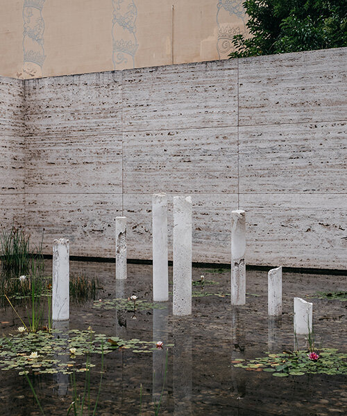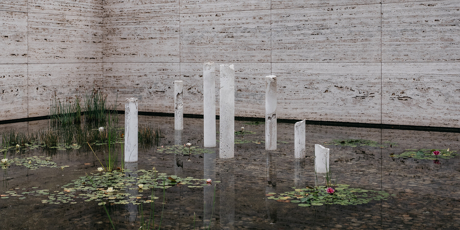 Wolters’ concrete sculptures are cast using water drawn from the Pavilion’s pond