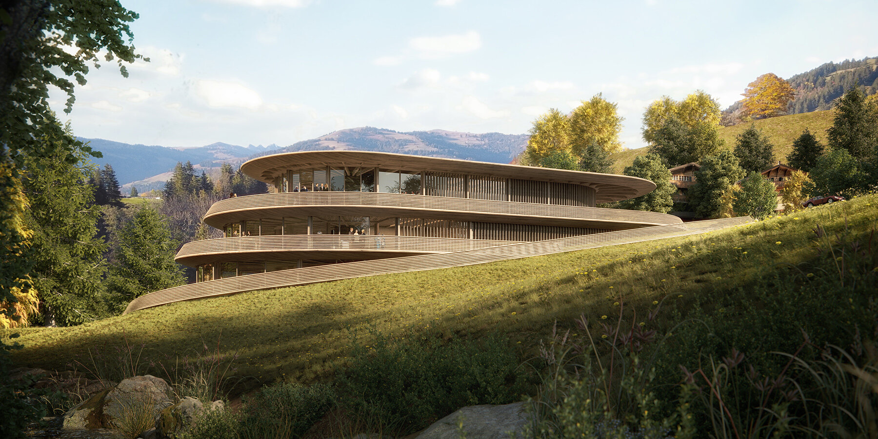 Gstaad House nestles into the valley and responds to its unique contours | images © Foster + Partners