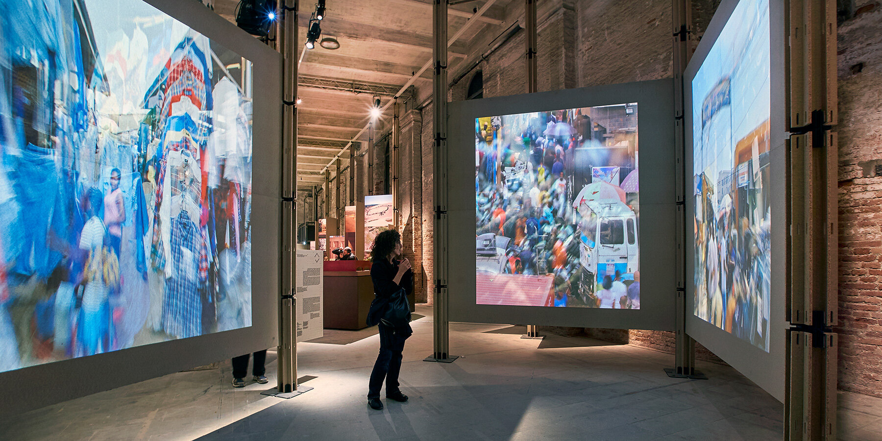 DB: Your pavilion merges data, video, and recycled textiles to evoke the atmosphere of the markets. How did you navigate the challenge of capturing their energy and complexity within the formal setting of the Arsenale?