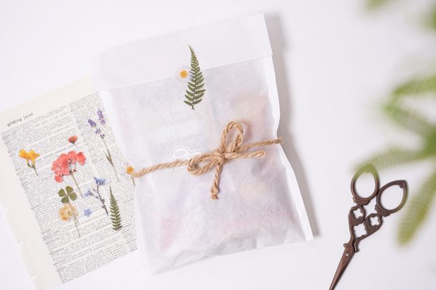 You can feel the pressed flower more vividly because it is delicately expressed by minimizing the space between the pressed plant’s image and outer line. The sticker is matte finished, and this gives a natural effect when it is pasted onto the organizer or note. Also, it is designed in a more three-dimensional way, by expressing the shadows of the plant.