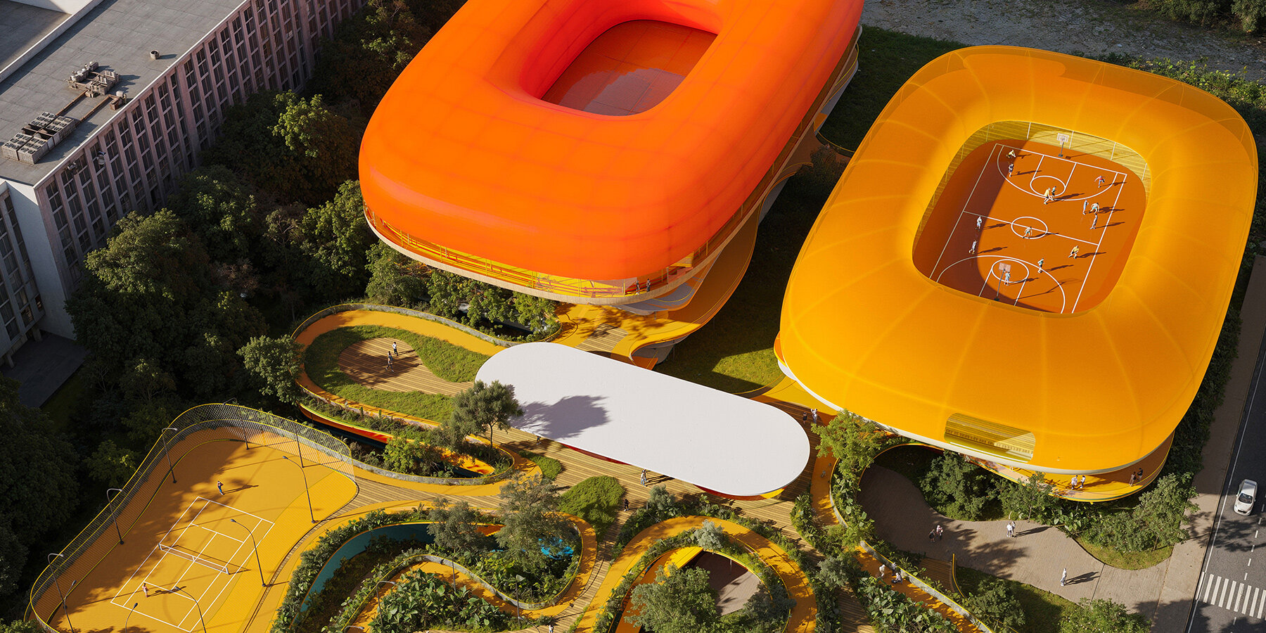 with its undulating facade, the design integrates contemporary cultural programming with the building’s soviet-era legacy.