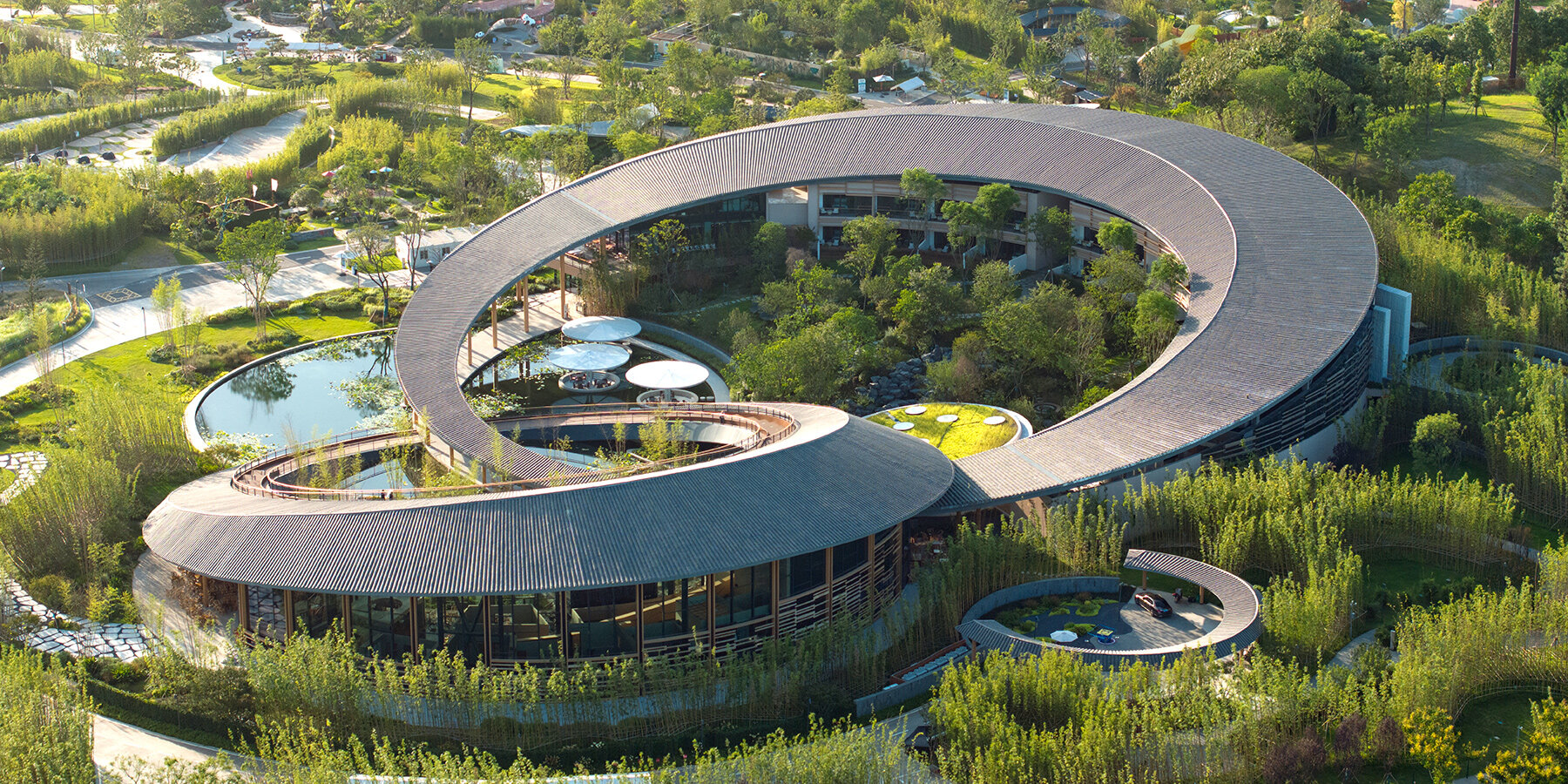 a rooftop path provides panoramic views across the site