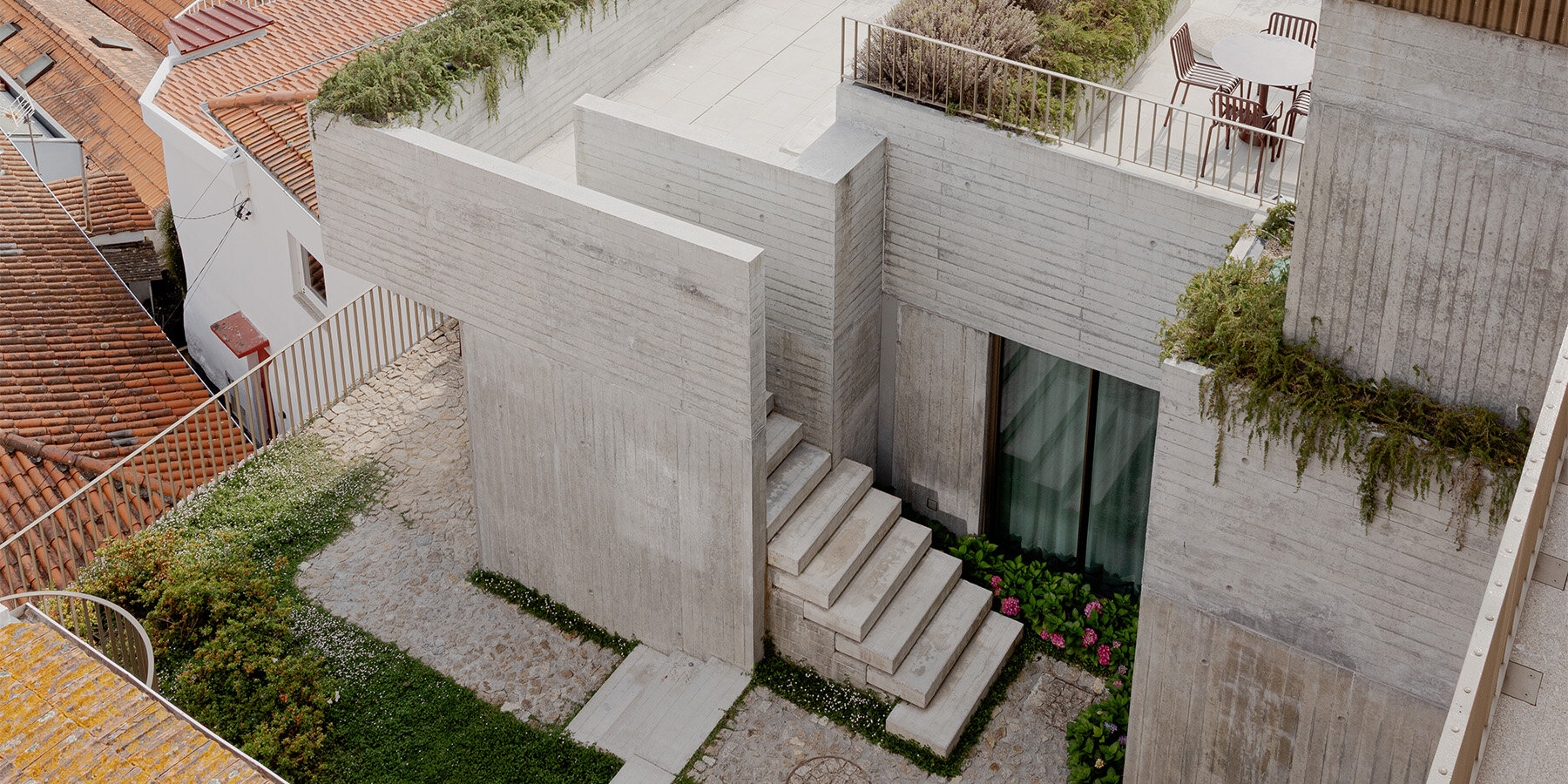renovated porto residence reimagines hillside terraces with stepped concrete layers